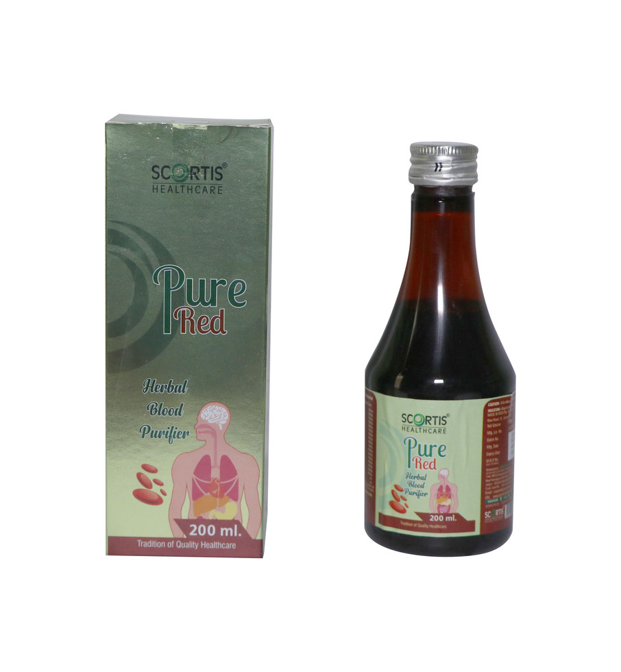 Pure red ayurvedic blood purifier syrup is commonly used to cleanse the blood, detoxify the system, and support the overall health of the skin, liver, and other bodily systems. It contains a blend of herbs that are believed to promote detoxification, support organ health, and improve circulation.